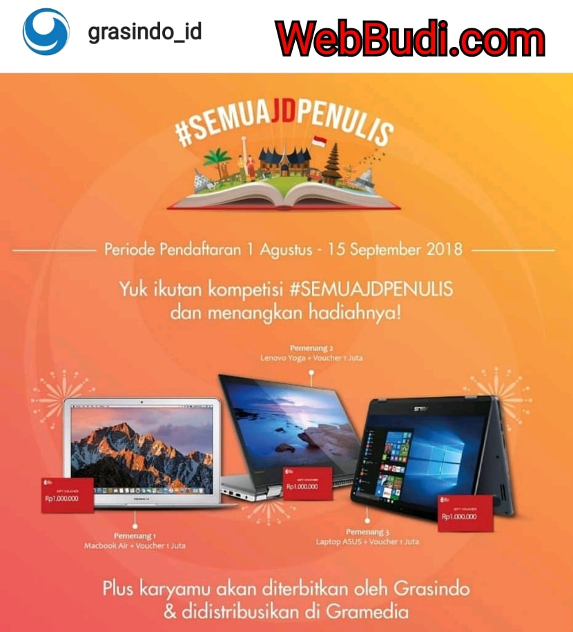 Sumber Info : Kuis #SemuaJDPenulis Berhadiah Macbook Air, Laptop Asus dan Voucher Jutaan Rupiah